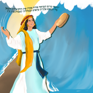 • מרים מנהיגה את הנשים. לפי המדרש היא מעודדת אותן גם בתוך השעבוד להרים מבט אל עבר הגאולה, היא מעבירה לנשים מסר של אמונה ותקווה – אמנם צידה לדרך לא הכינו אך תופים הביאו איתם! ובהתפרצות רגשות לנוכח נס ההצלה של קריעת ים סוף מרים יוצאת והנשים אחריה בתופים ובמחולות (שמות, ט"ו, כ').
